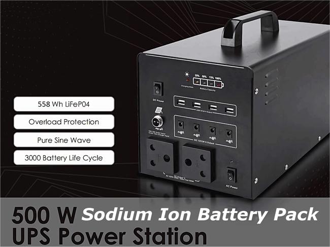 Sodium Ion Battery Pack 12V 12.4V 45Ah 558Wh Safety Assurance 500W Portable Power Station with UPS Function SIB Pack